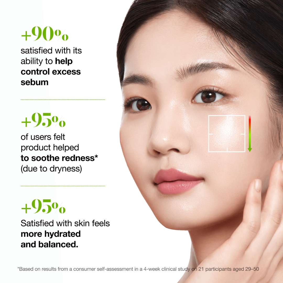 Helps reduce excess oil, soothes the skin for a clearer look, and refines rough texture while minimizing flakiness. With a pH of 5.5, it balances moisture and enhances hydration for healthier skin.