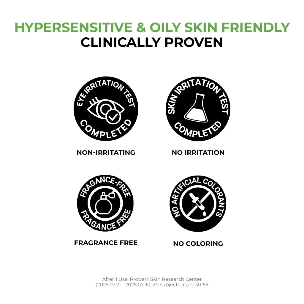 Features a non-oily texture that leaves skin feeling fresh, and is dermatologist tested to ensure suitability for both hypersensitive and oily skin.