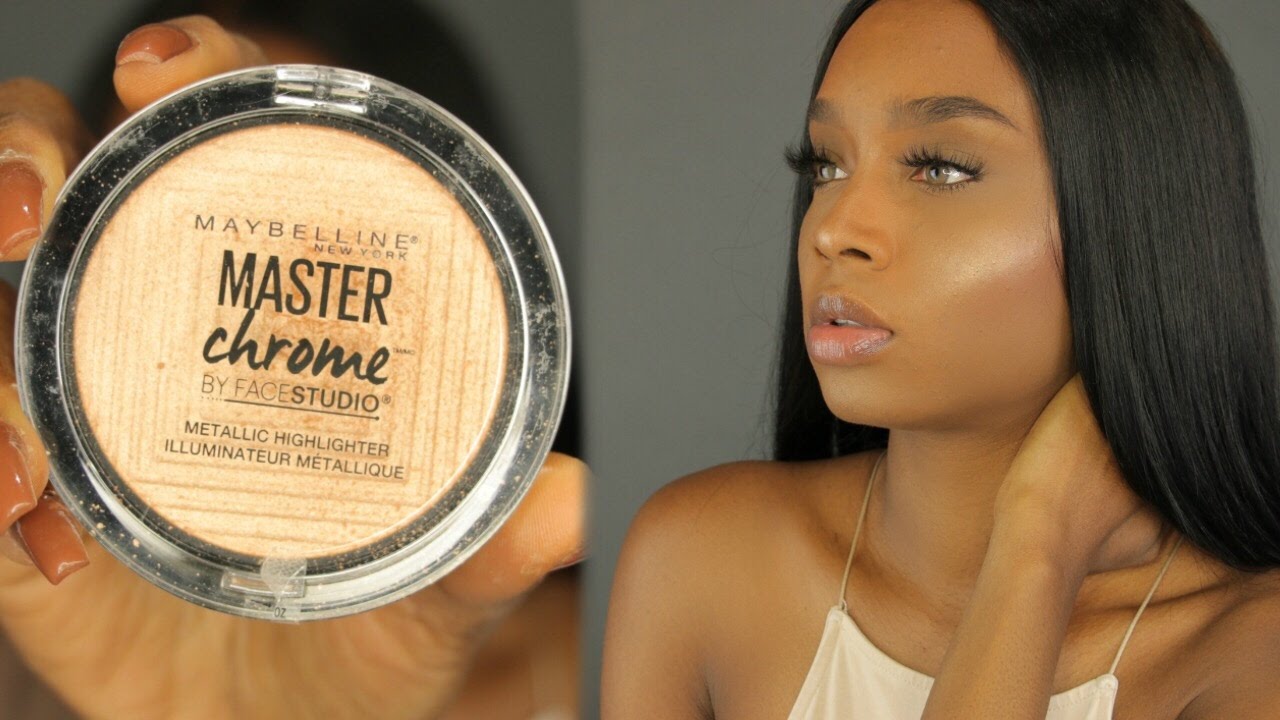 What's happening now? The chrome effect. Now, skin heats up with a warm metallic sheen. This Maybelline FaceStudio Master Chrome Metallic Highlighter is infused with metallic pigments that create a reflective finish.