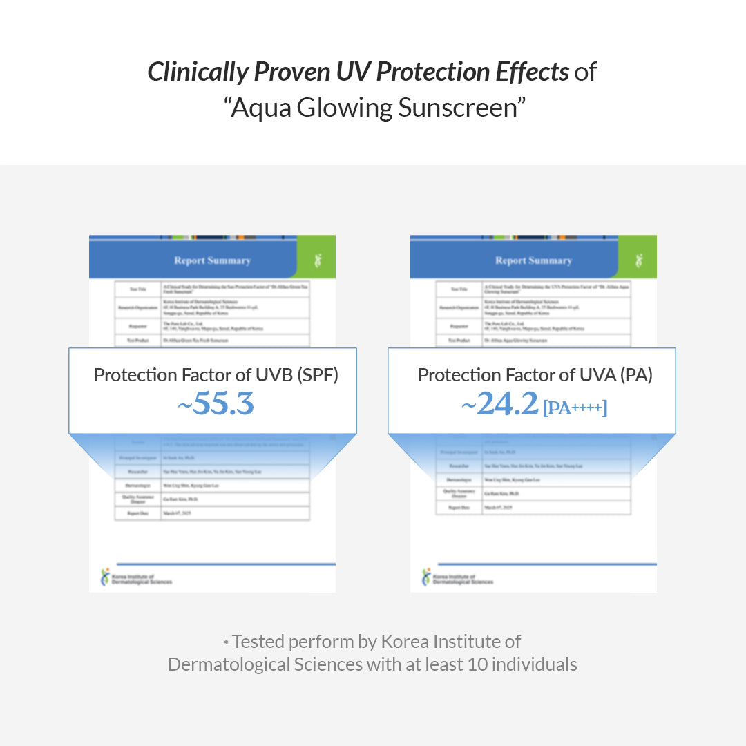 Aqua glowing sunscreen, a light, non-sticky sunscreen that hydrates and leaves your skin with a healthy glow while keeping it protected from the sun.