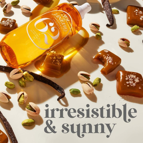 Experience the sweet sensation of our iconic perfume mist, with delicious notes of pistachio, salted caramel, and vanilla. Feels like summer all year round.